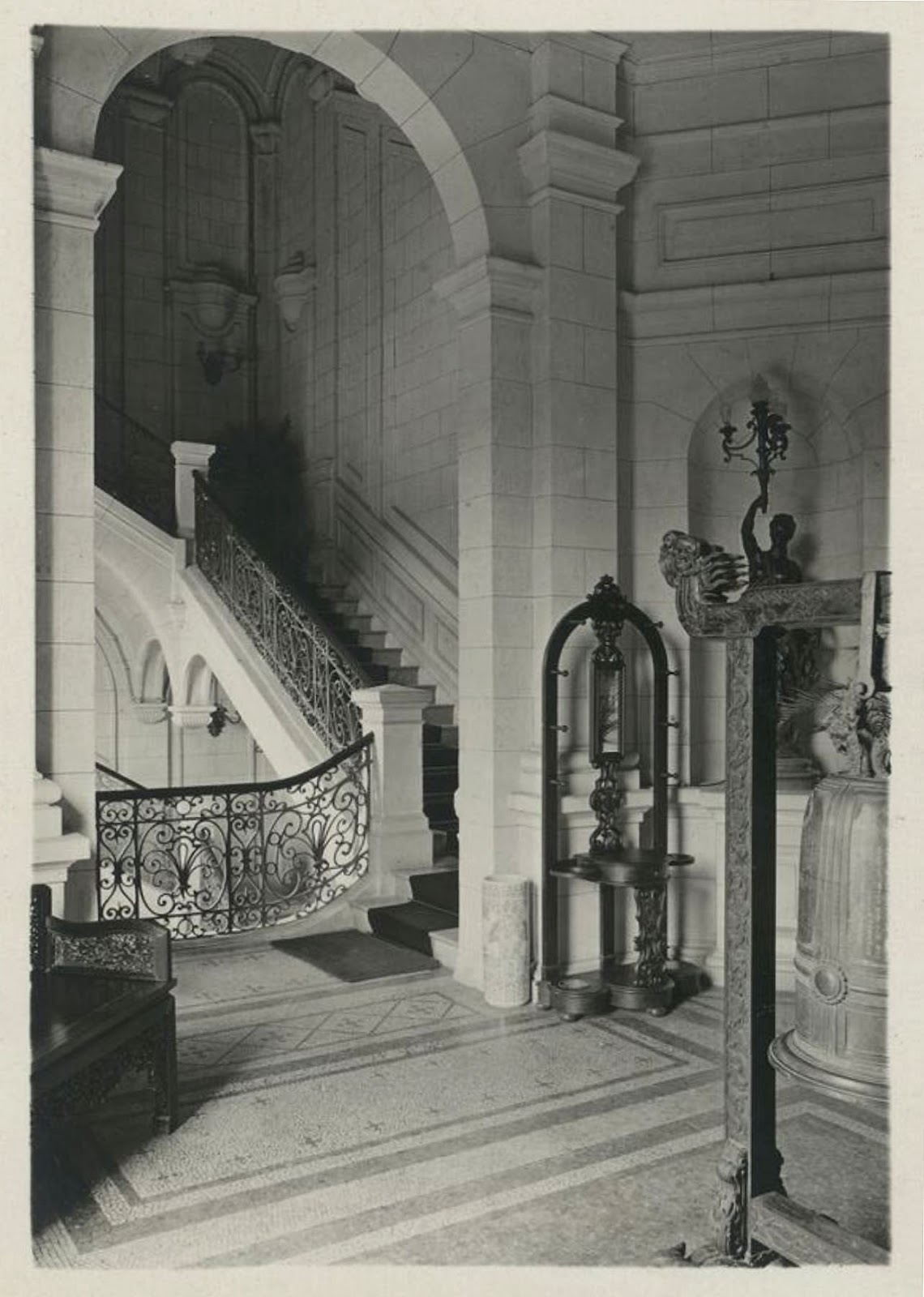 cầu thang lớn và sảnh trung tâm (a formal piano nobile reached by a grand staircase)