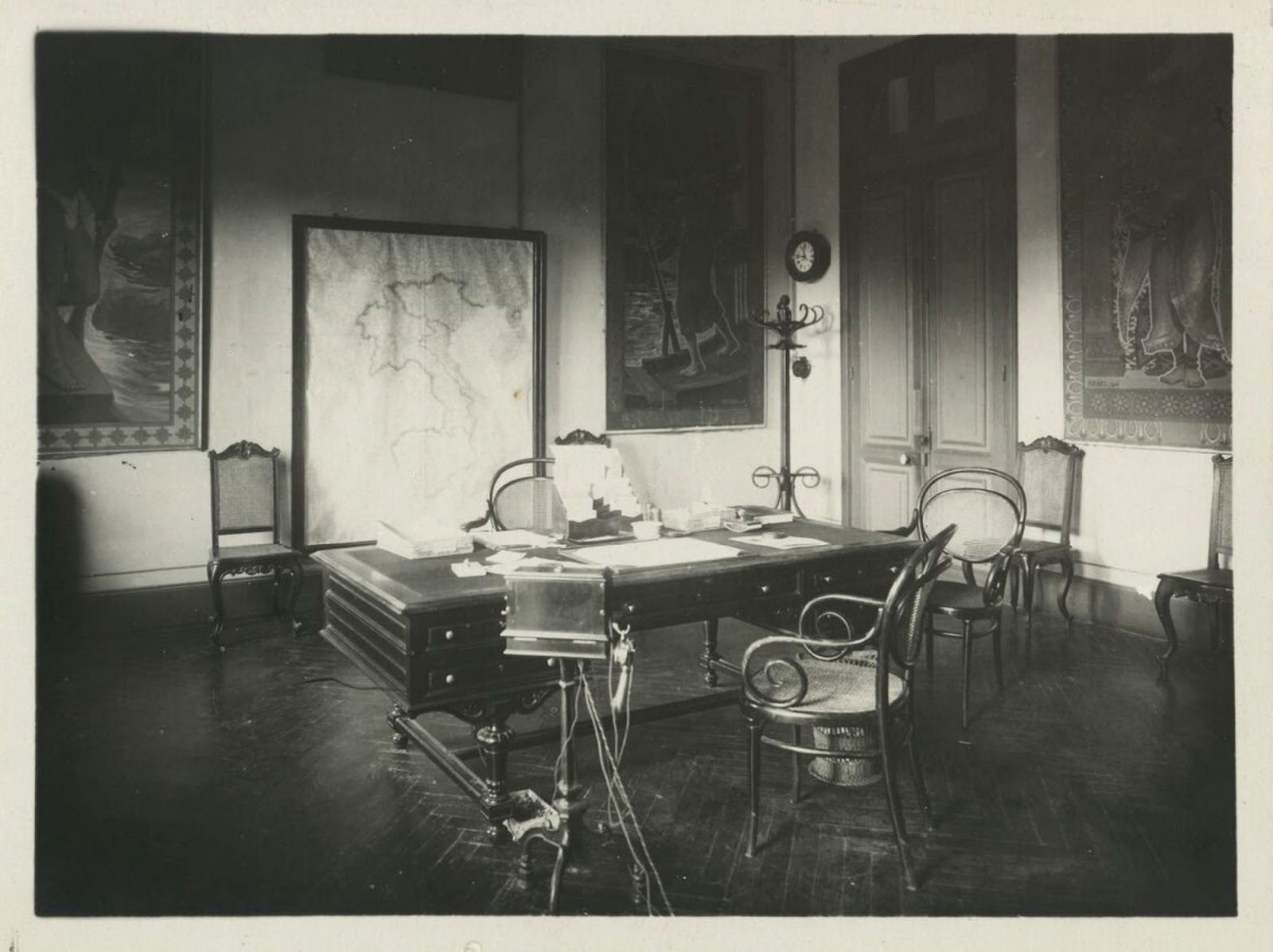 Phòng làm việc của quan Toàn quyền Đông Dương. Trên bức tường góc phải có ảnh vua Khải Định.